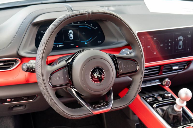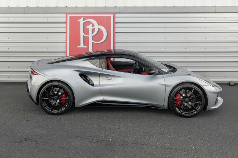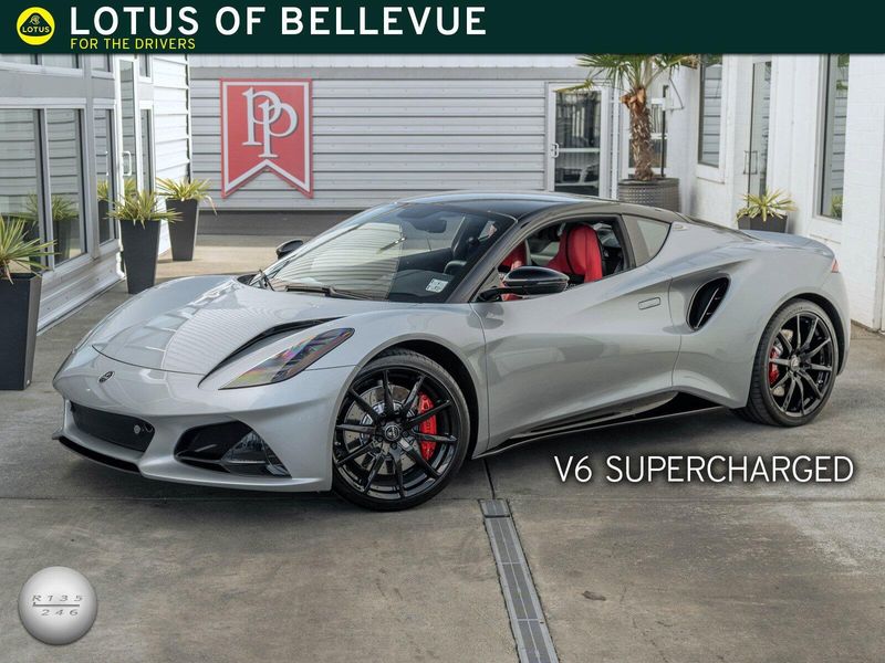 *2025 Lotus Emira V6 - Manual * * 400 Horsepower Supercharged V6 Powered * Osium Silver Over Red Leather Interior * 6-Speed Manual, Sport Suspension, Exterior Black Pack, Premium Audio*Factory Options* * Exterior Black Pack * Gloss Black Roof Panel * Cantrails * Mirror Backs * Front Air Blades * Front Splitter * Side Sills * Rear Diffuser * Exhaust Tailpipe Finishers * Rear Lotus Badge * Red Brake Calipers * KEF Premium Audio * 560 Watts * 10-Speakers * 20-Inch Forged Wheels * Gloss Black * Black and Silver Nose Badge and Center Caps * Sport Suspension * Goodyear Eagle F1 SuperSport * Black Leather Trimmed Steering Wheel * Black Alcantara Headliner * Sport Pedals * Standard Glass*Additional Information* * Extensive XPEL PPF ( Full Front + Rockers + Quarter Panels) - $3,295 * Bumper to Bumper Warranty for 3 Years or 36,000 Miles * 8-Year Chassis Corrosion Warranty * Battery Maintainer*Standard Features* * 3.5-Liter Supercharged V6 * 400 Horsepower * 317 Lb-Ft of Torque * Edelbrock 1740 Supercharger * 6-Speed Manual Transaxle * Lotus-Designed and Manufactured Bonded Aluminum Chassis * Blade Design Daytime Running Lamps * C-Shaped LED Taillights * Lightweight High Performance 2-Piece Brake Discs * Bilstein Monotube Dampers * 12-Way Adjustable Heated Seats * KEF Uni-Q Premium Audio * 560 Watts * Wireless Apple CarPlay and Android Auto * 12.3-Inch TFT Instrument Display * 10.25-Inch HMI Touchscreen * Dual-Zone Climate Control * Electronic Monitoring System * Driver and Passenger Airbags * Inflatable Curtain Airbags * Seat Belt Pre-TensionFor more information on this NEW 2025 Lotus Emira V6 or any of our High-Performance, Luxury, Exotic, and Special Interest cars always in stock, contact one of our friendly and knowledgeable sales consultants or always feel free to drop by our 40,000+ sq ft of Indoor Showrooms in Bellevue, WA - Home of an Exciting Inventory of Luxury, Exotic, High Performance and Collectible Automobiles. Nobody Has What We Have!