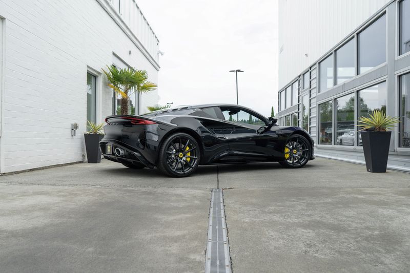 *2025 Lotus Emira V6 - Manual * * Supercharged V6 Powered - 400 Horsepower * Cosmos Black Over Black Alcantara w/Yellow Stitching * 6-Speed Manual Transmission, Lower Black Pack, KEF Premium Audio*Factory Options* * Lower Black Pack * Front Air Blades * Front Splitter * Side Sills * Rear Diffuser * 20-Inch 10-Spoke Cast Alloy Wheels * Gloss Black * Yellow Brake Calipers * Sport Suspension * Goodyear Eagle F1 Supersport Tires * Black Leather Trimmed Steering Wheel * KEF Premium Audio System * 560 Watts * 10-Speakers * Black Alcantara Headliner * Sport Pedals * Standard Glass * Battery Maintainer*Additional Information* * Extensive XPEL PPF ( Full Front + Rockers + Quarter Panels) - $3,295 * 3-Year/36,000 Mile Warranty Bumper to Bumper Warranty * 8-Year Chassis Corrosion Warranty*Standard Features* * 3.5-Liter Supercharged V6 * 400 Horsepower/317 Lb-Ft of Torque * Edelbrock 1740 Supercharger * 0-60 MPH in 4.2 Seconds / 1/4 Mile in 12.6 Seconds at 109 MPH * 6-Speed Manual Transaxle * Lotus-Designed and Manufactured Bonded Aluminum Chassis * Blade Design Daytime Running Lamps * C-Shaped LED Taillights * Lightweight High Performance 2-Piece Brake Discs * Bilstein Monotube Dampers * 12-Way Adjustable Heated Seats * KEF Uni-Q Premium Audio * 560 Watts * Wireless Apple CarPlay and Android Auto * 12.3-Inch TFT Instrument Display * 10.25-Inch HMI Touchscreen * Dual-Zone Climate Control * Electronic Monitoring System * Driver and Passenger Airbags * Inflatable Curtain Airbags * Seat Belt Pre-TensionFor more information on this 2025 Lotus Emira V6 or any of our High-Performance, Luxury, Exotic, and Special Interest cars always in stock, contact one of our friendly and knowledgeable sales consultants or always feel free to drop by our 40,000+ sq ft of Indoor Showrooms in Bellevue, WA - Home of an Exciting Inventory of Luxury, Exotic, High Performance and Collectible Automobiles. Nobody Has What We Have!